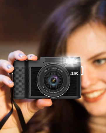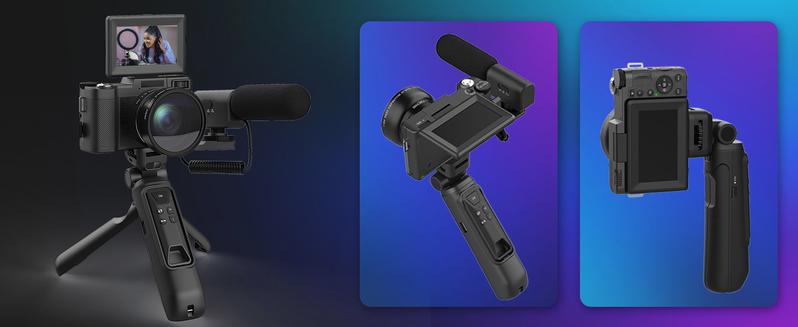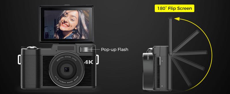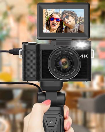 4K Digital Camera with Creator Accessory Kit 48MP Remote Control Vlogging Camera for Vloggers Autofocus Flip Screen Photography Cameras with Tripod Grip, Wide-Angle & Macro Lens, Mic, Batteries Full HD Camcorder with Remote and Fill Light